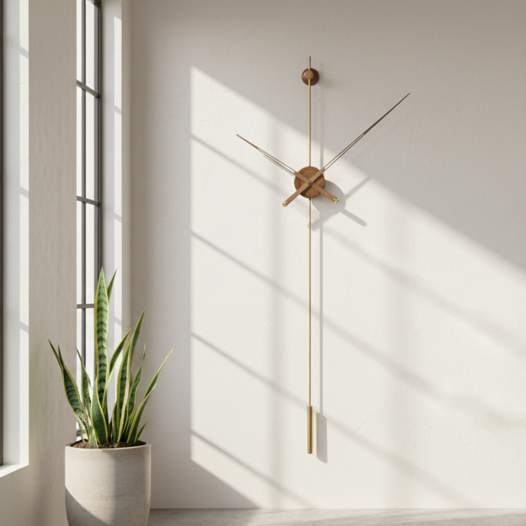 Designer Luxury Premium Minimalist Abstract Mordern Metal And Wooden Alpha Wall Clock