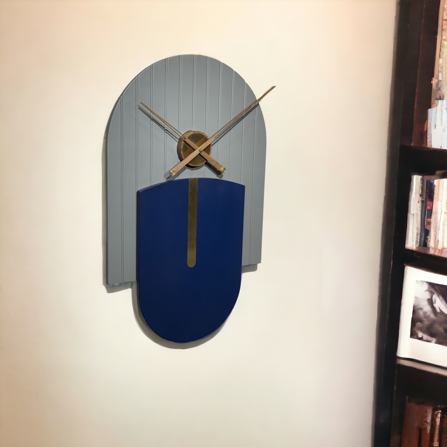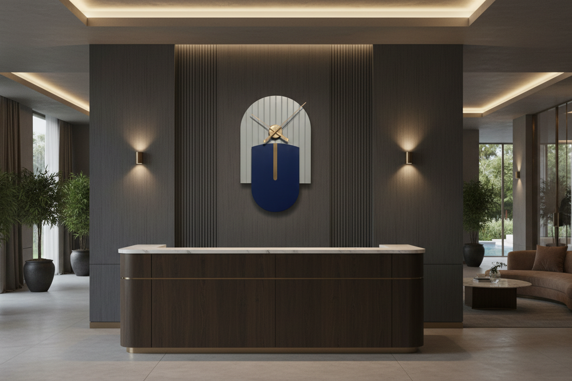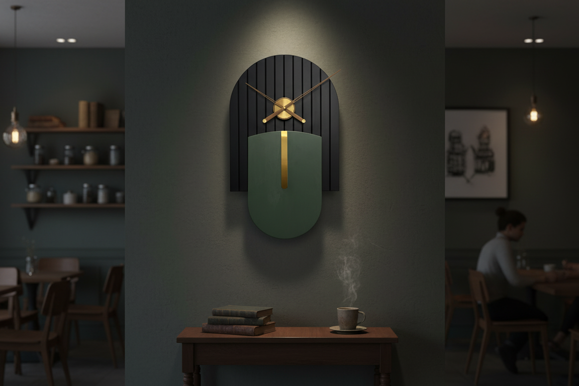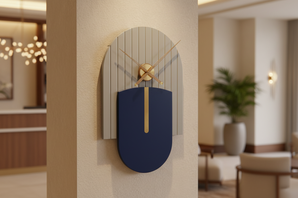 Designer Luxury Premium Minimalist Abstract Mordern Metal And Wooden Amber Wall Clock