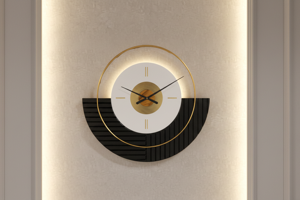 Designer Luxury Premium Minimalist Abstract Mordern Metal And Wooden Neptune Wall Clock