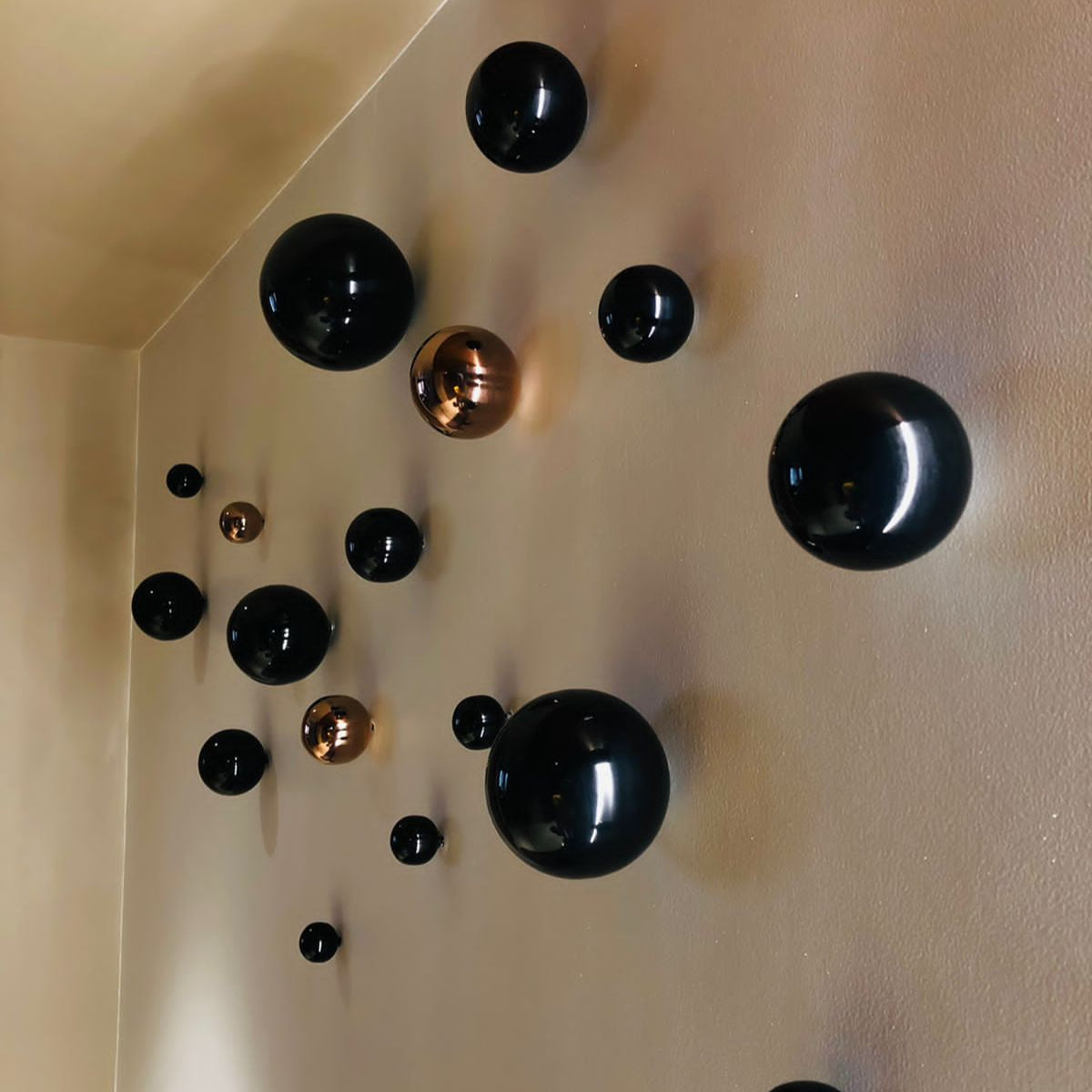 - This piece is crafted from Stainless steel with a sleek Gold, Rosegold , Metalic Black finish. Its spherical shapes create a visually captivating focal point, blending seamlessly into minimalist, contemporary, or industrial interiors. Perfect for living rooms, bedrooms, or office spaces,
